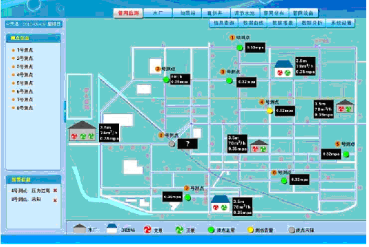 自來水廠調度中心負責對全市供水管網進行監(jiān)測,具體功能如下: